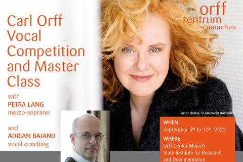 The Orff Center in Munich is hosting a master class for voice with a focus on the lied and stage repertoire of Carl Orff with Petra Lang, mezzo-soprano, and Adrian Baianu, vocal coaching. The closing concert will take the form of a competition, in which a jury, chaired by the former director of the Vienna State Opera, Ioan Holender, will award prizes.